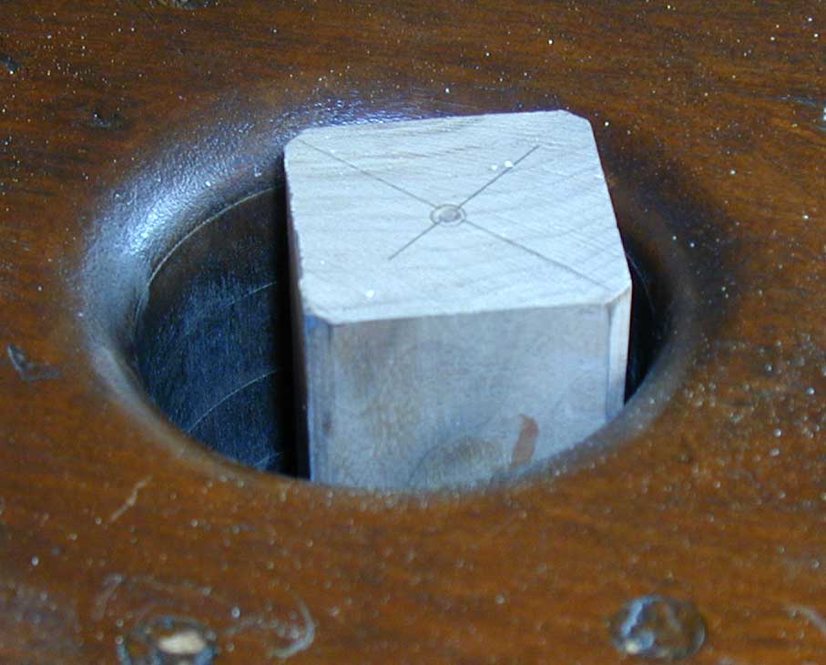Step 4 - Cut a central post (It doesn't have to be round.), drill a small hole in the center and mark and drill