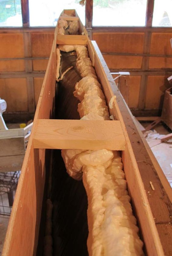 Allow the foam to cure, then turn the crate over and inject foam on the other side. Foam that expands beyond the edges of the box can be easily removed with a knife or saw.